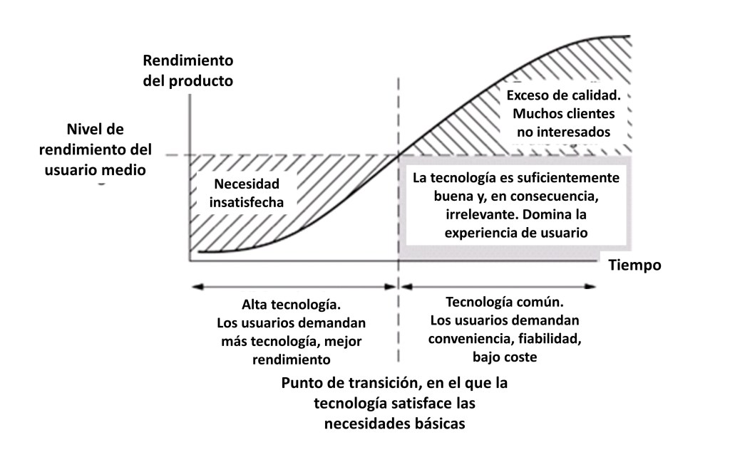El buen diseño juega un papel clave durante el proceso de asimilación de la tecnología, como se muestra en este cuadro que Don Norman tomado prestado2 Clayton Christensen: