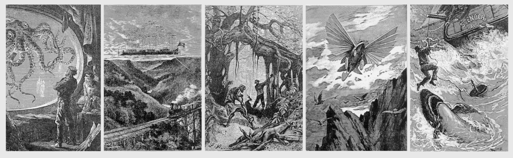 En conclusión, creo que no es exagerado decir que las novelas de Viajes extraordinarios de Julio Verne constituyen un artefacto sociohistórico clave para comprender el amanecer de nuestra era moderna, no solo por su muy discutido estatus literario como proto- ciencia ficción, sino también por sus evocadoras ilustraciones. El cambio de una visión del mundo del siglo XIX a una de principios del XX es evidente tanto en el contenido estilizado de estas imágenes (la forma de vestir, el vello facial, las “máquinas de sueños” victorianas, la representación saint-simoniana de los científicos como héroes conquistadores). etc.—y en su formato publicado real, a medida que la propia tecnología de impresión evolucionaba desde la xilografía hasta la reprografía de semitonos.
