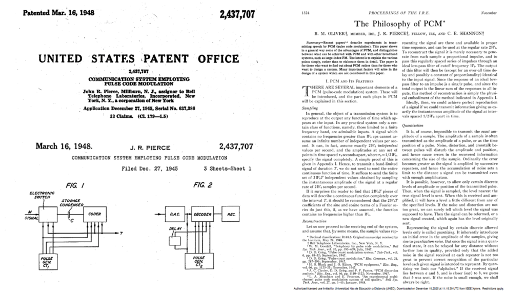 - Oliver, B.M., J.R. Pierce, y C.E. Shannon. «The Philosophy of PCM». Proceedings of the IRE 36, n.o 11 (1948): 1324-31. https://doi.org/10.1109/JRPROC.1948.231941. ↩︎
